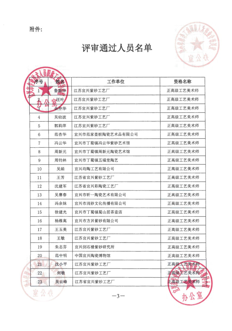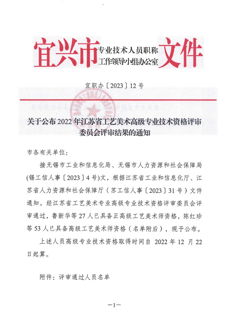 关于公布2022年江苏省工艺美术高级专业技术资格评审委员会评审结果的通知