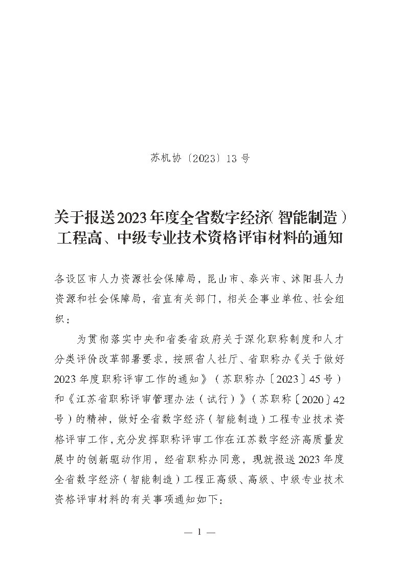 关于报送2023年度全省数字经济(智能制造)工程高、中级专业技术资格评审材料的通知