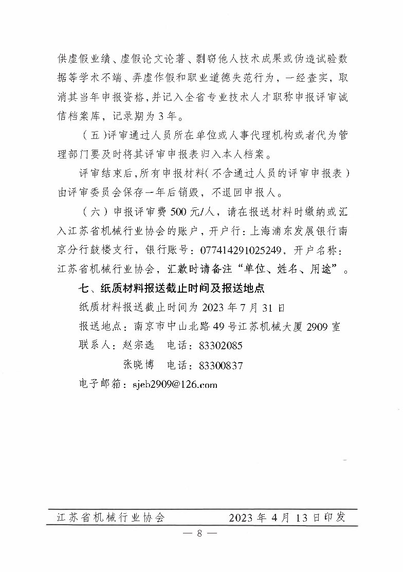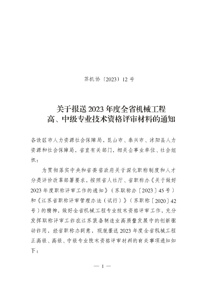关于报送2023年度全省机械工程高、中级专业技术资格评审材料的通