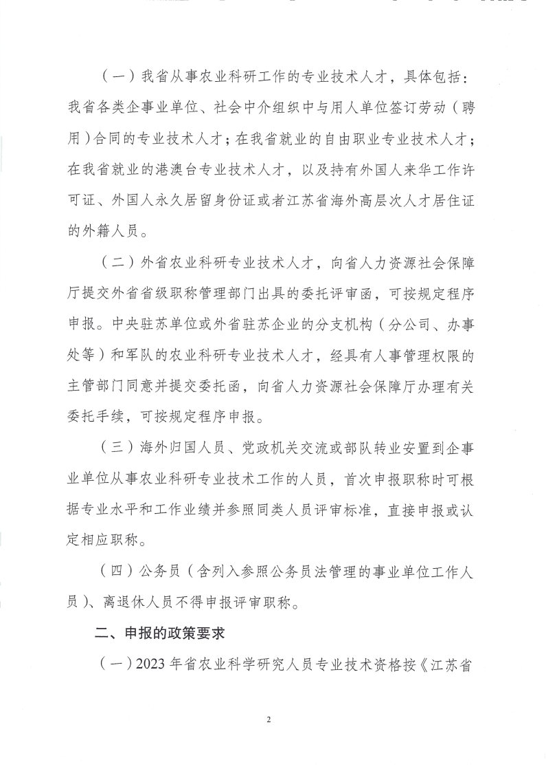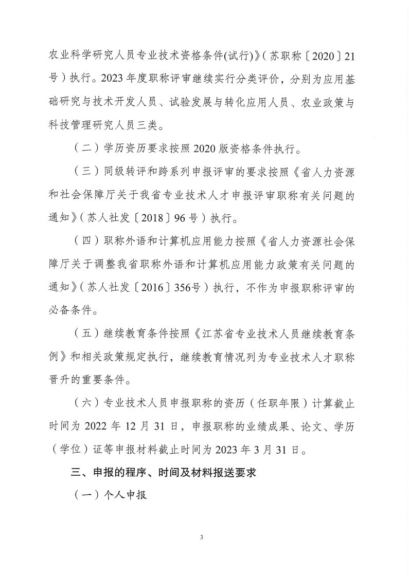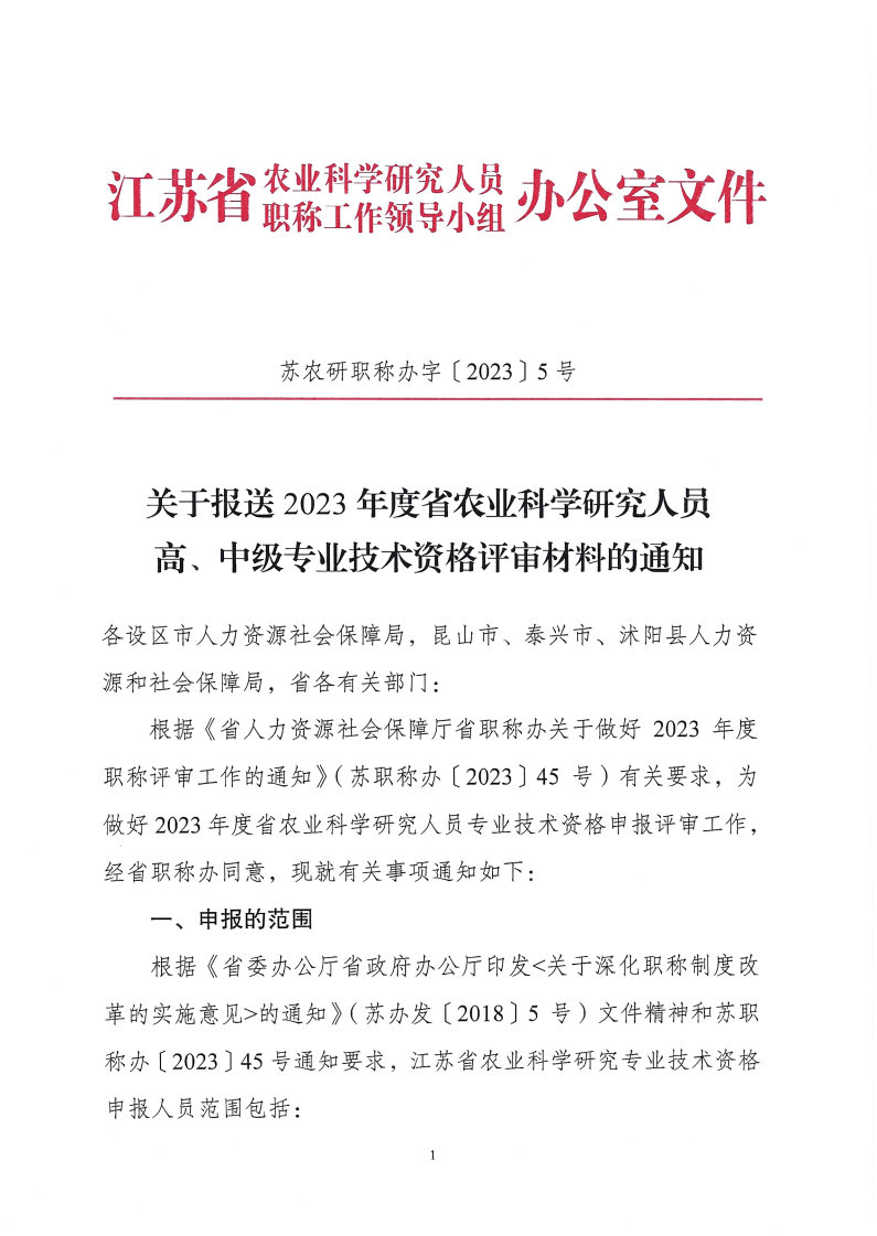 根据江苏省农业科学研究人员办公室《关于报送2023年省农业科学研究人员高、中级专业技术资格评审材料的通知》(苏农研职称办字〔2023〕5号)要求。现就有关申报事项说明如下: