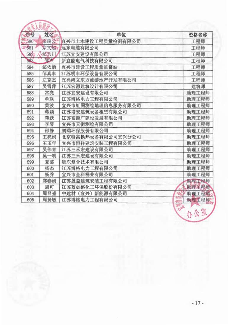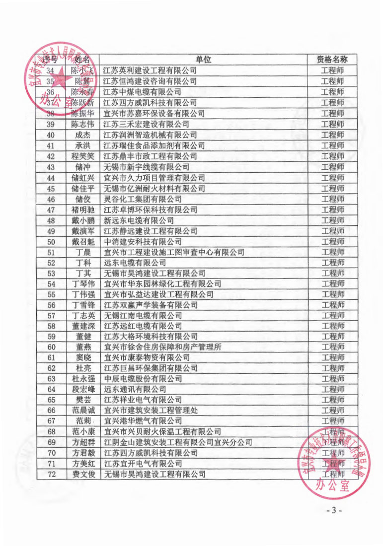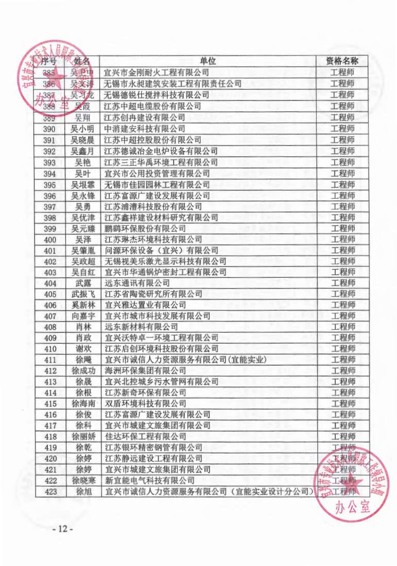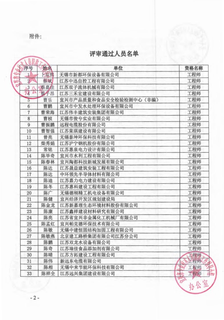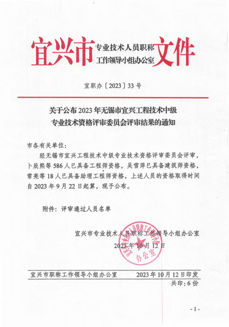 关于公布2023年无锡市宜兴工程技术中级专业技术资格评审委员会评审结果的通知