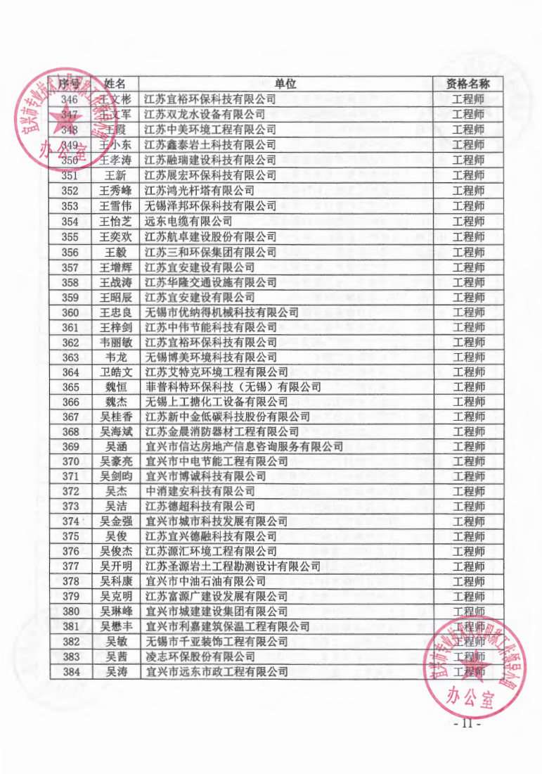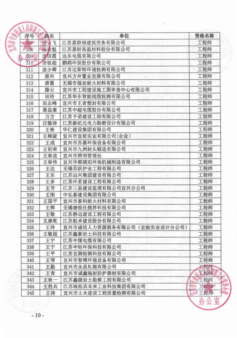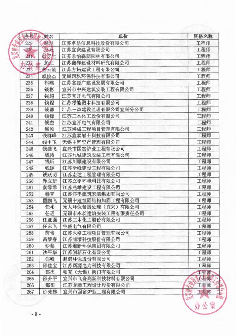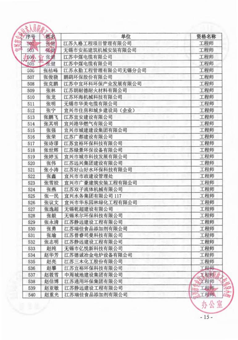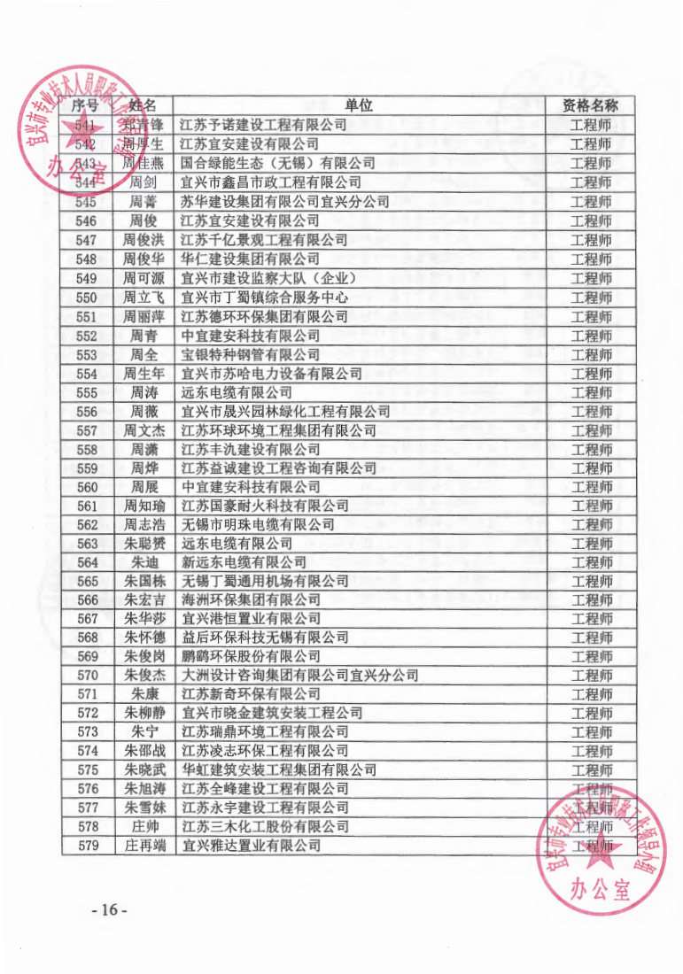关于公布2023年无锡市宜兴工程技术中级专业技术资格评审委员会评审结果的通知