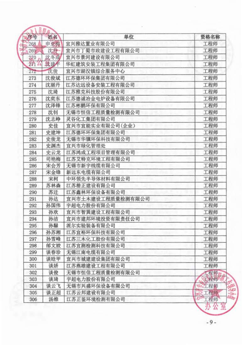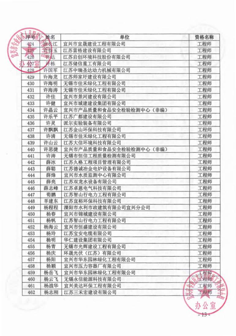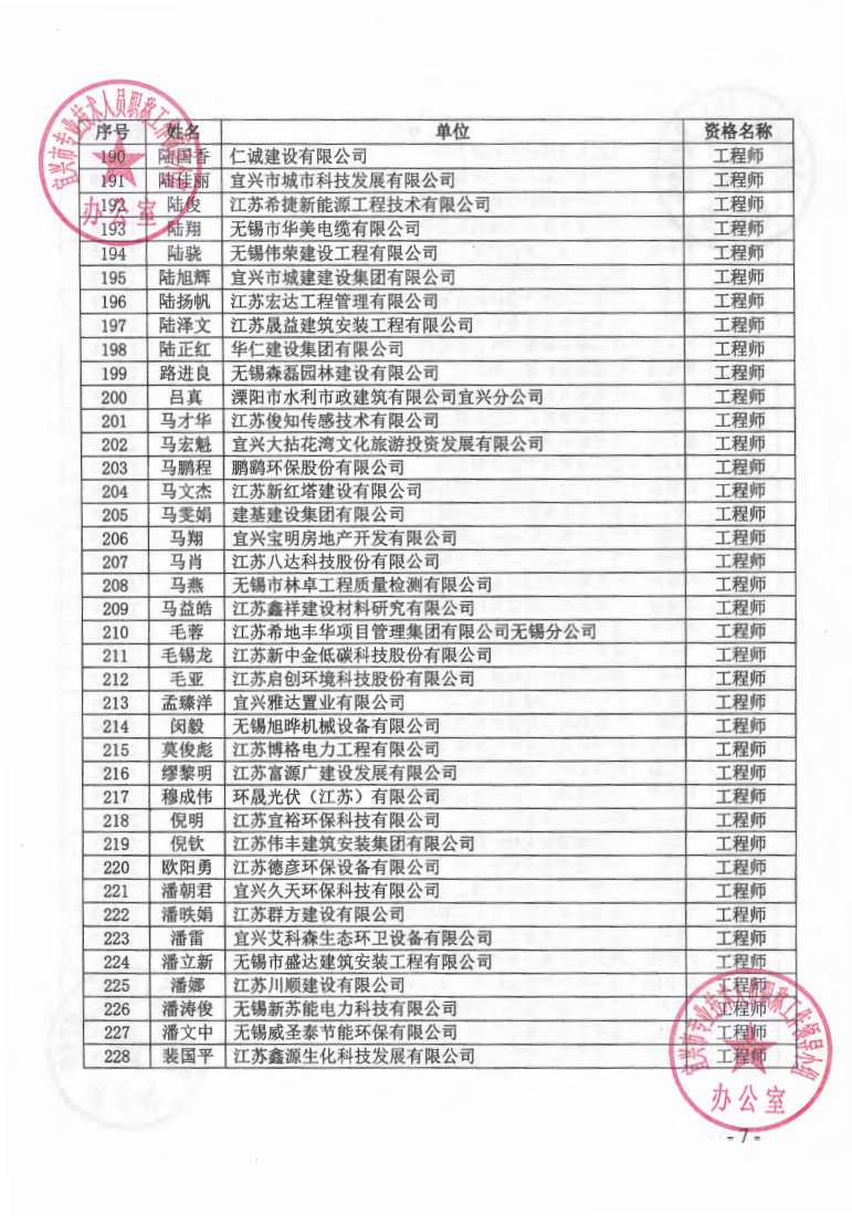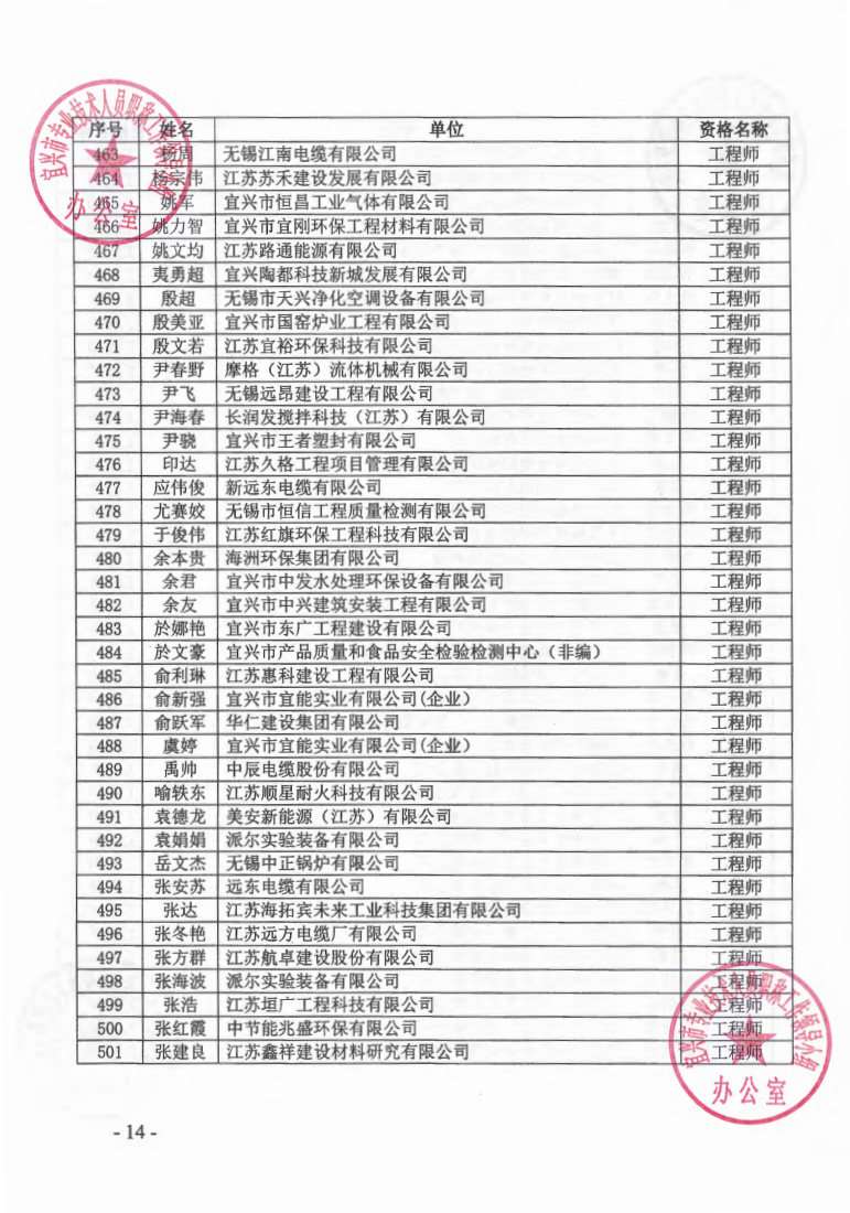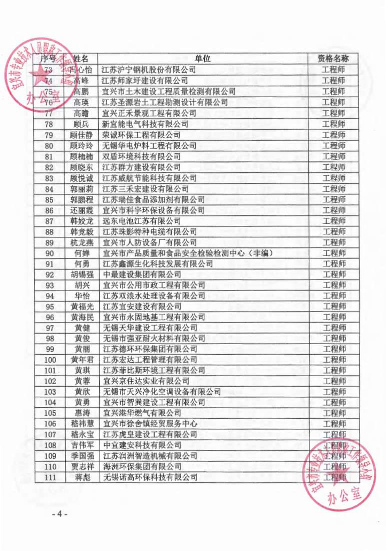 关于公布2023年无锡市宜兴工程技术中级专业技术资格评审委员会评审结果的通知