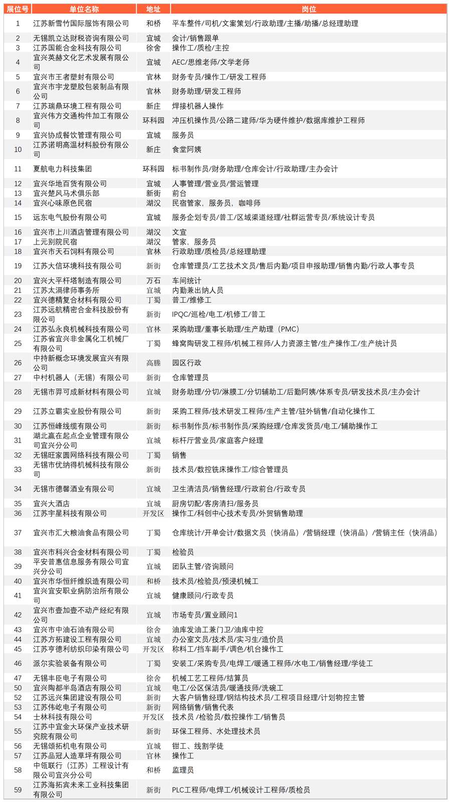 时 间:2024年3月27日(周三) 13:30—16:00 地 点:宜兴市人力资源市场(宜城街道龙潭东路189号) 主办单位:宜兴市人力资源和社会保障局、宜兴市妇女联合会 承办单位:宜兴市人才服务中心