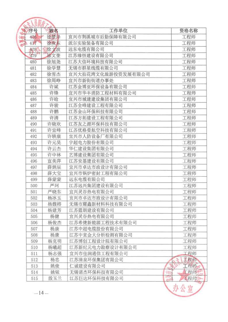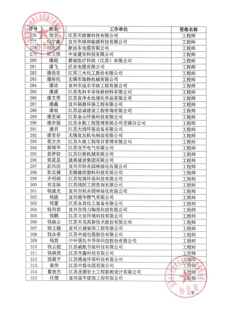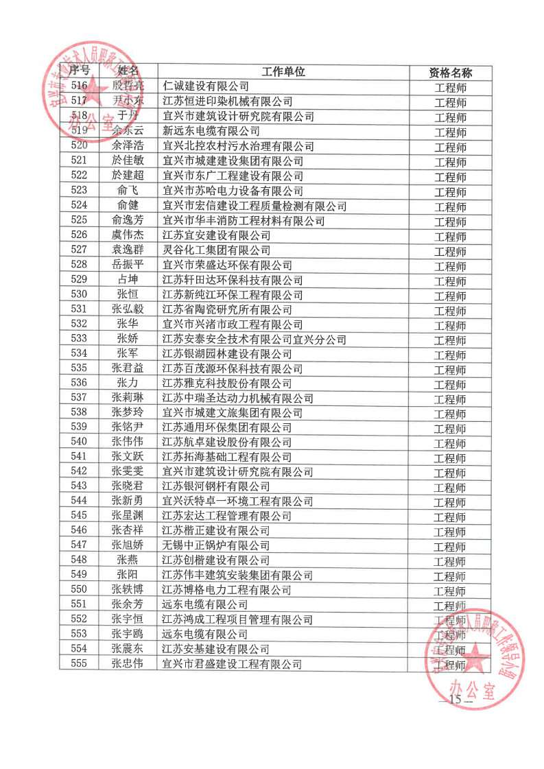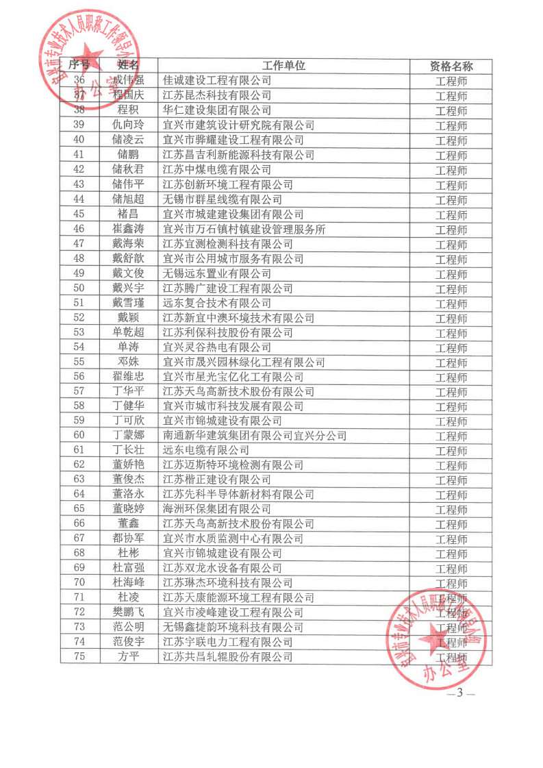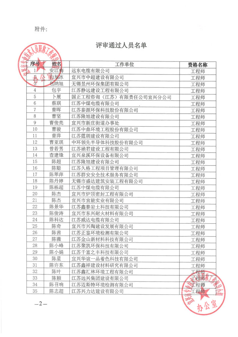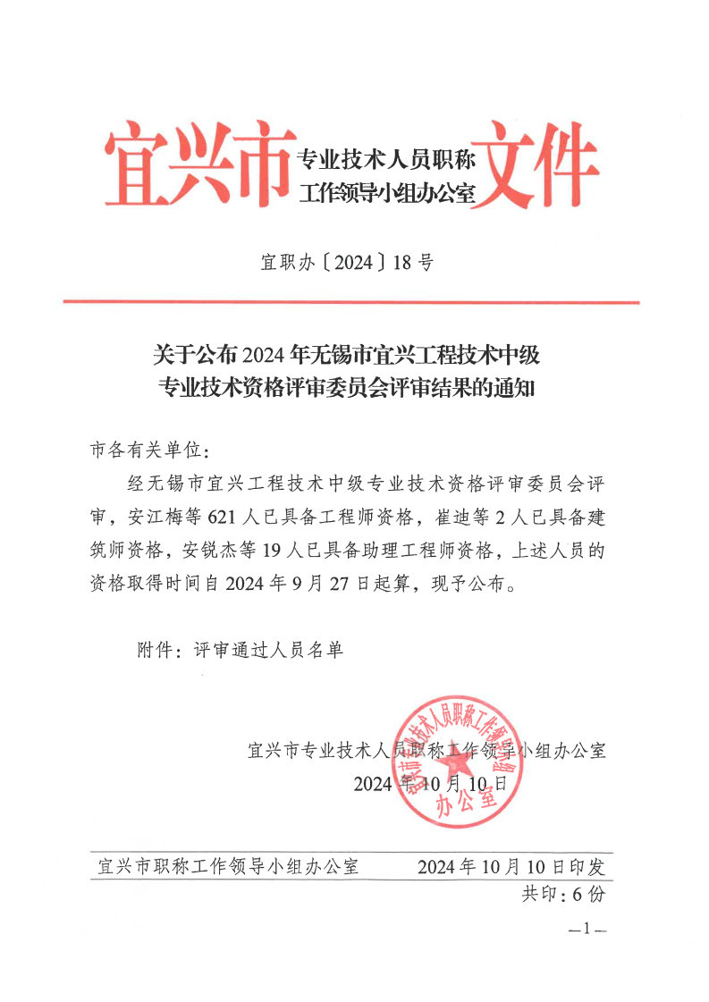 关于公布2024年无锡市宜兴工程技术中级专业技术资格评审委员会评审结果的通知