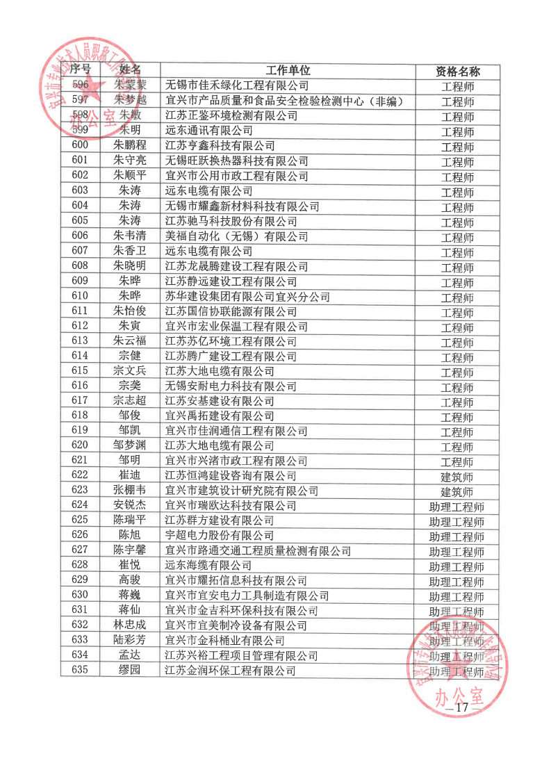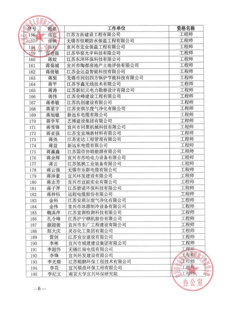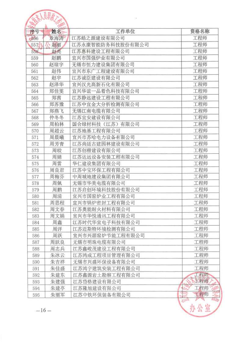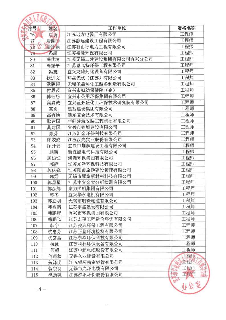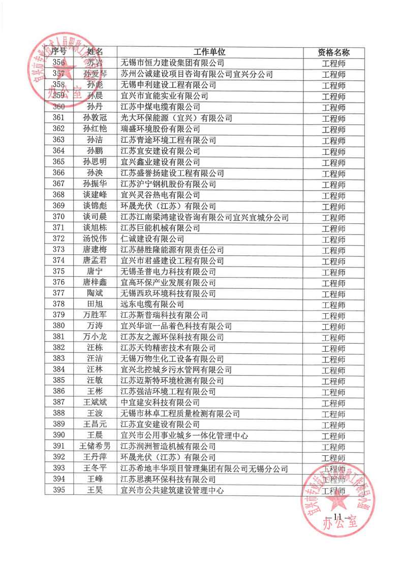 关于公布2024年无锡市宜兴工程技术中级专业技术资格评审委员会评审结果的通知