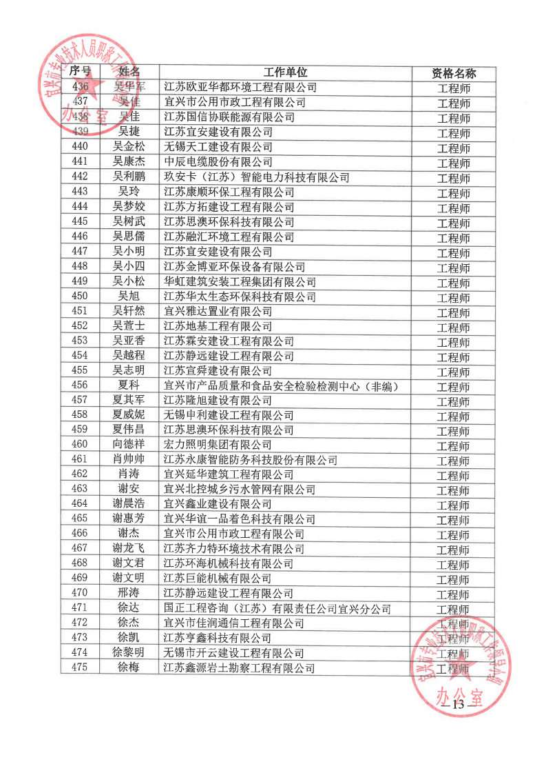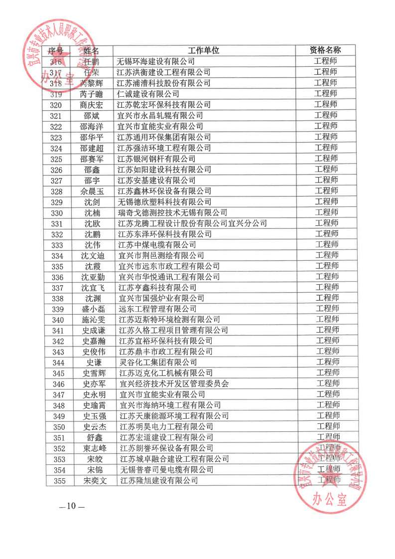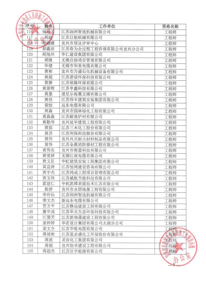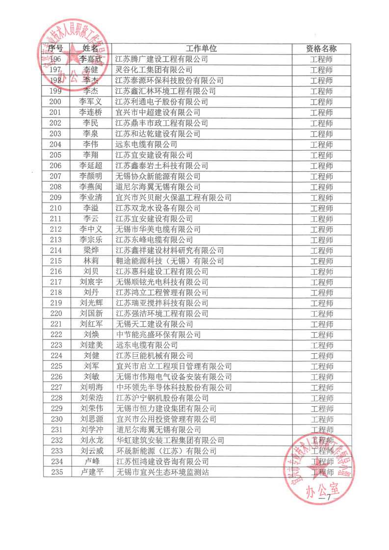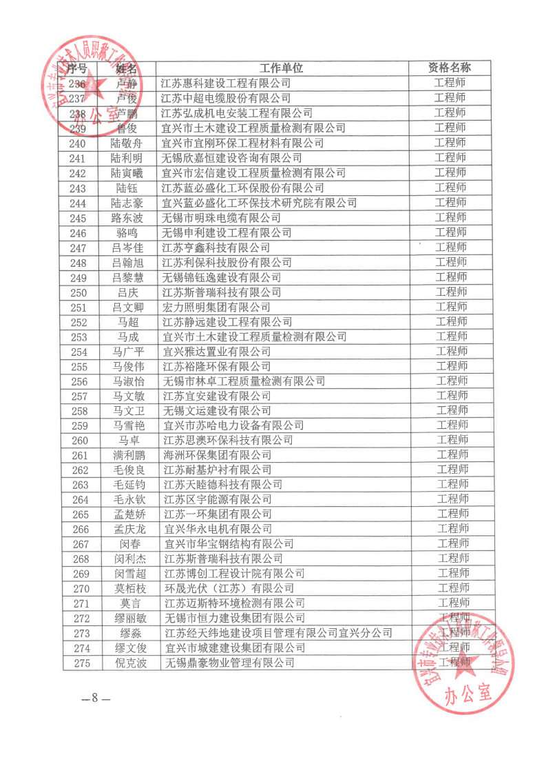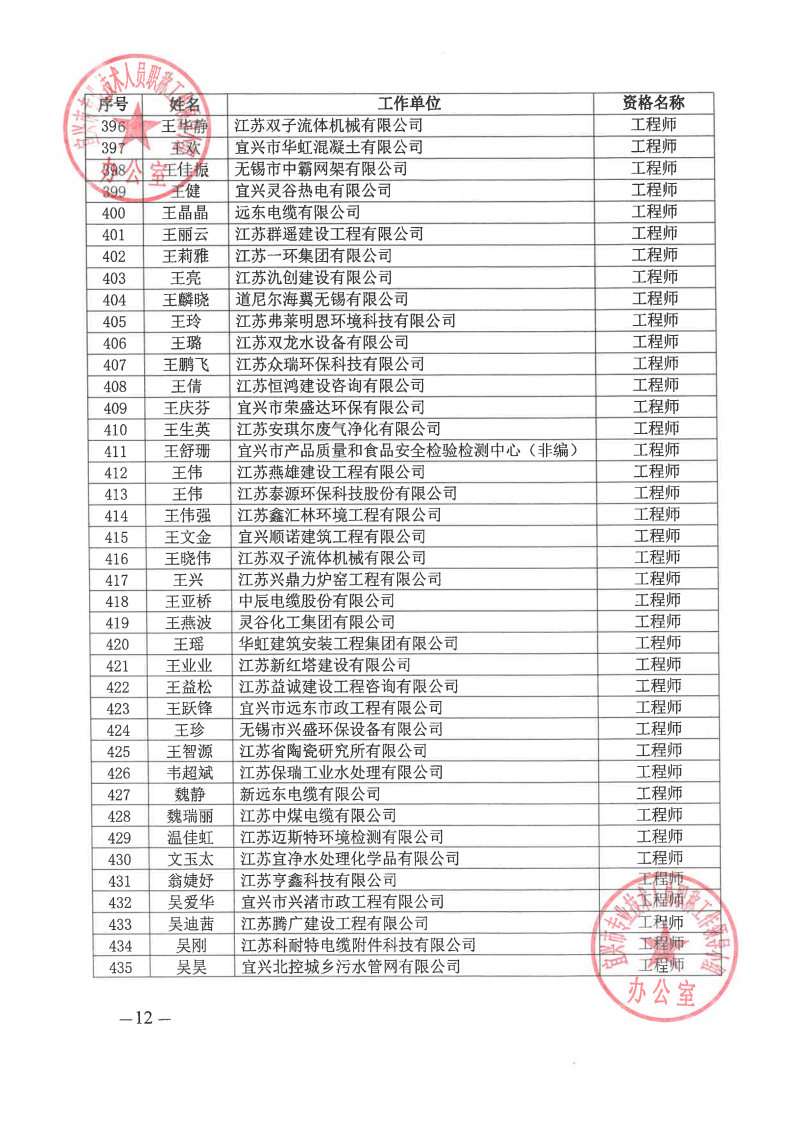 关于公布2024年无锡市宜兴工程技术中级专业技术资格评审委员会评审结果的通知