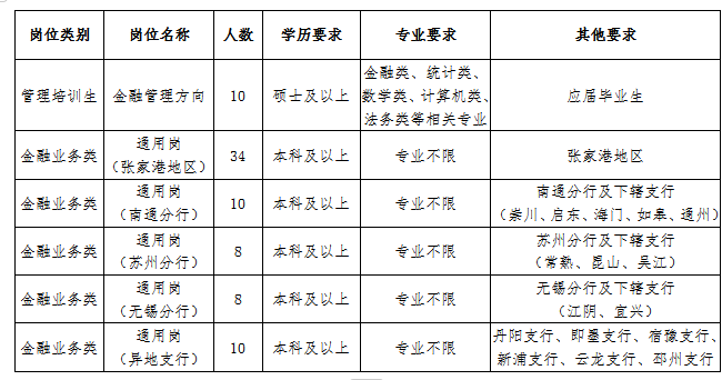 4.了解更多招聘讯息及相关动态,敬请关注“江苏辖区农商银行招聘”微信公众号或“张家港农商银行招聘”微信公众号。