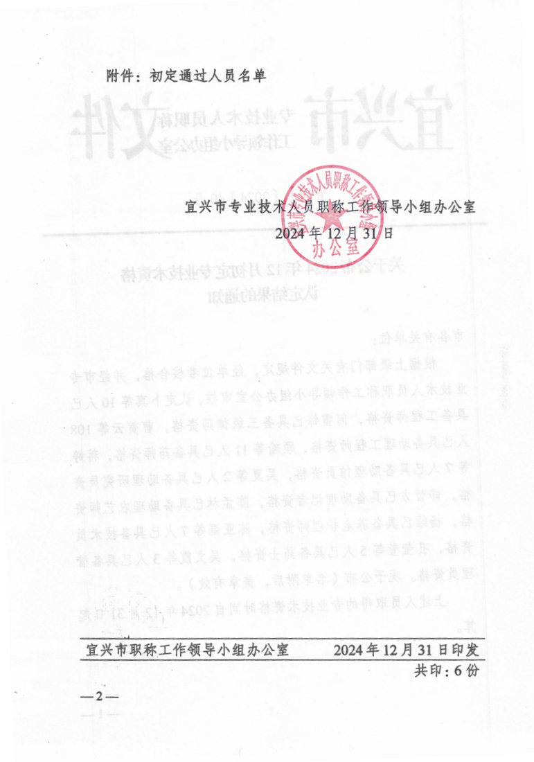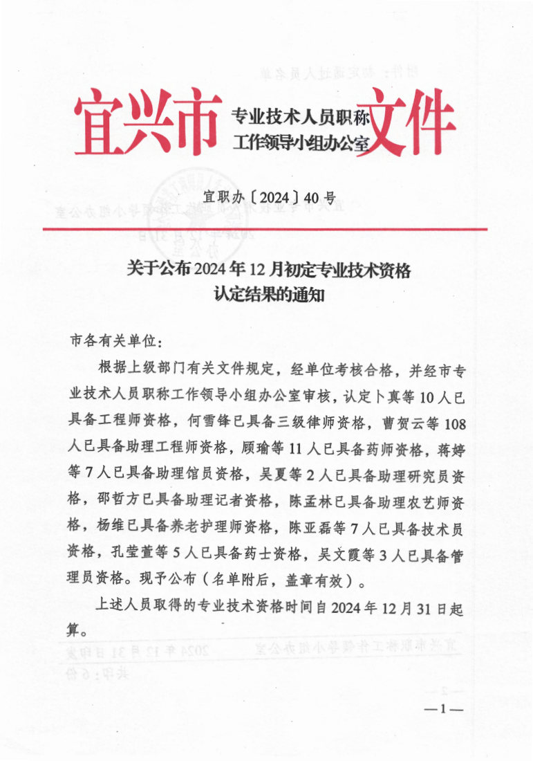 关于公布2024年12月初定专业技术资格认定结果的通知