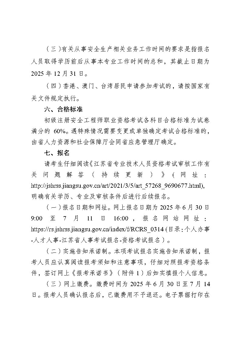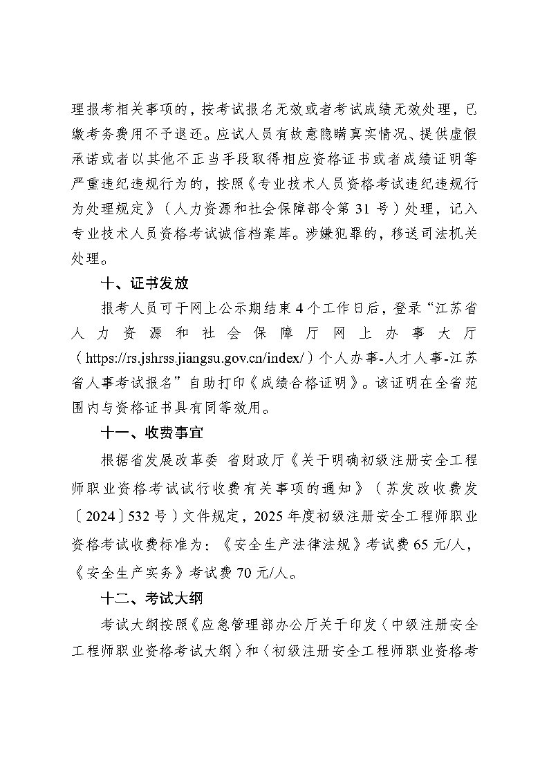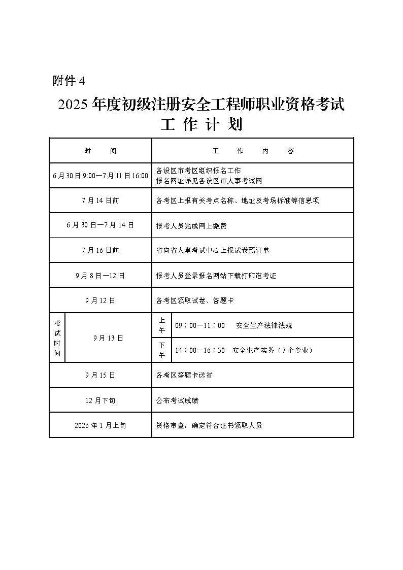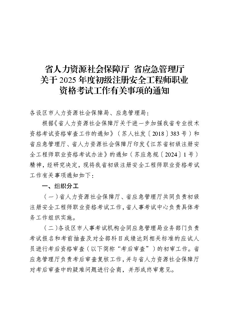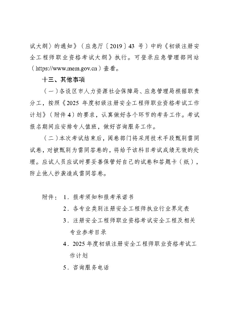附件:关于2025年度初级注册安全工程师职业资格考试工作有关事项的通知