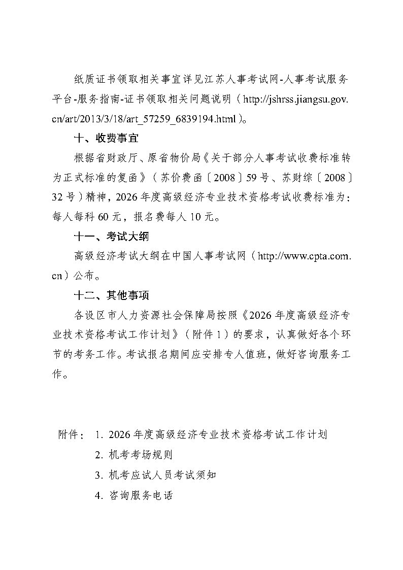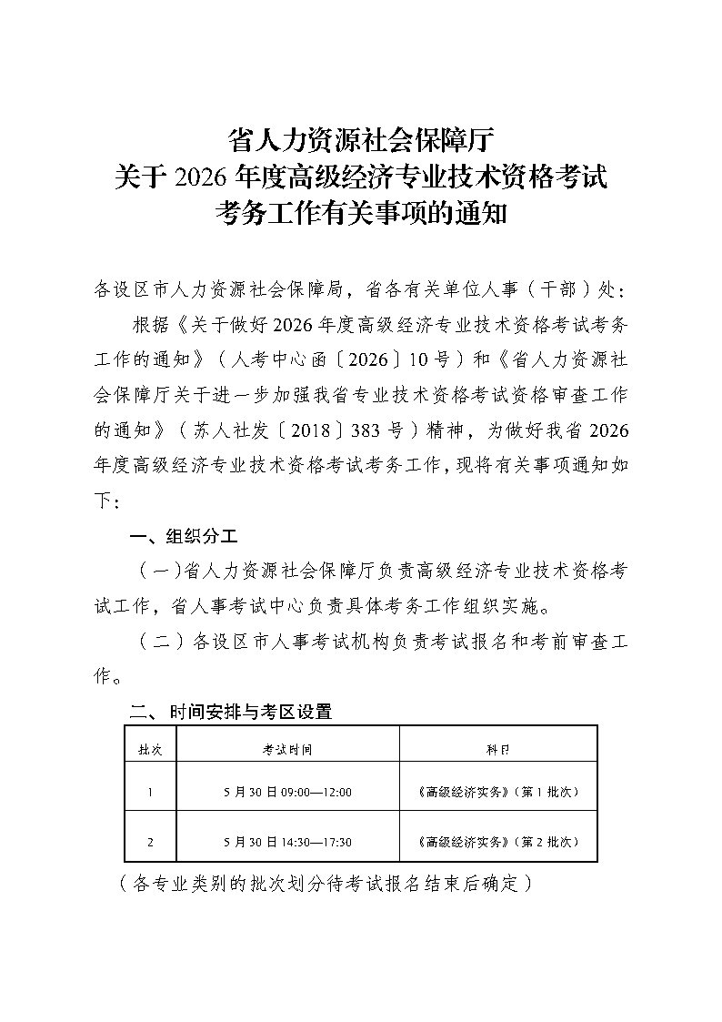关于2026年度高级经济专业技术资格考试考务工作有关事项的通知