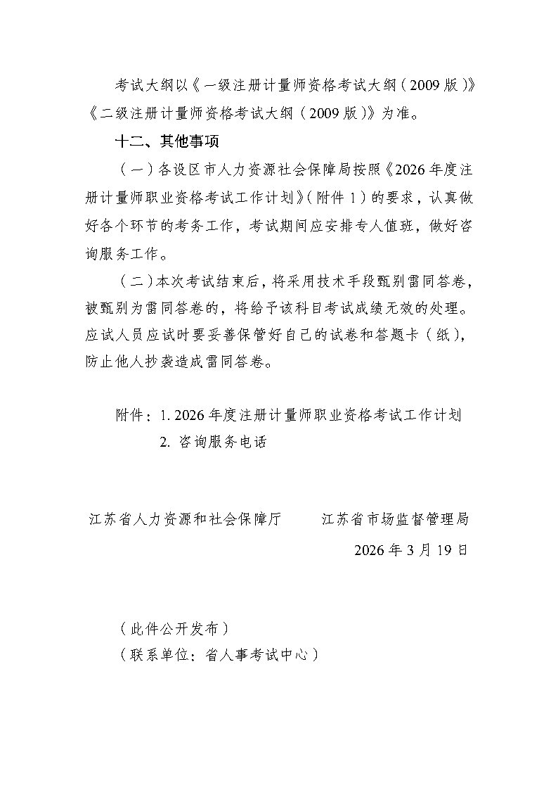关于2026年度注册计量师职业资格考试考务工作有关事项的通知
