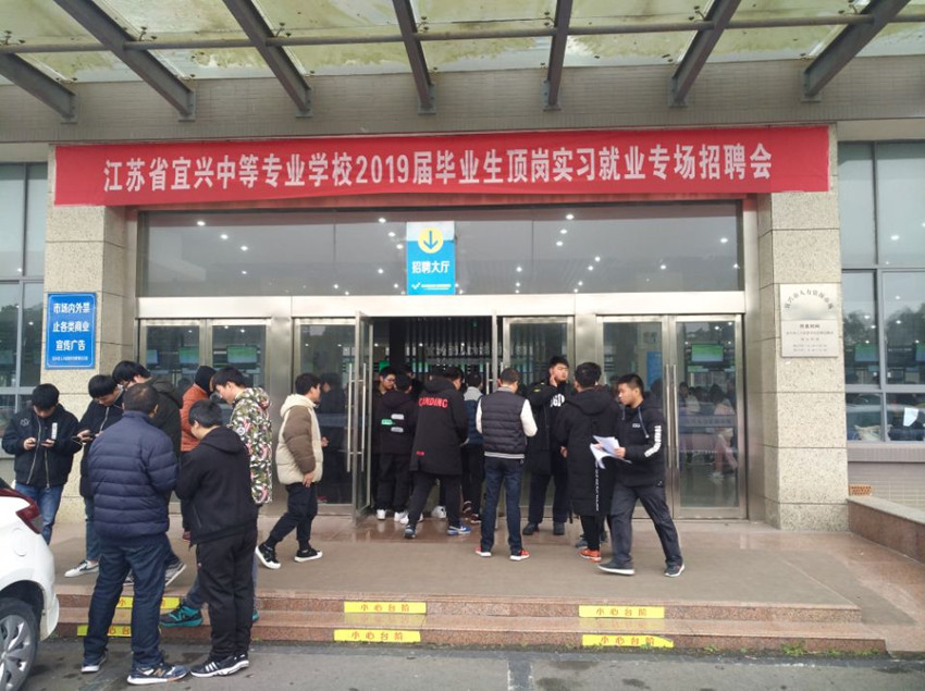 为做好本地学校毕业生就业工作,近日,市人社局举办了宜兴中专2019届毕业生实习就业专场招聘会。 此次招聘会吸引了无锡江南电缆有限公司、红牛维他命饮料(江苏)有限公司等近百家企业前来揽才,共提供了岗位2179个。招聘会现场气氛热烈、人潮如涌,每家企业前都挤满了咨询的学生。招聘单位工作人员对前来咨询的学生详细地介绍本单位的运营状况、员工工资待遇和工作环境等求职者比较关注的问题,同时也提出了应聘该单位的人员应具有的各种素质和能力,让学生提前了解企业招聘流程及要求。据统计,本场招聘会共进场1749人,收到有效简历623份。