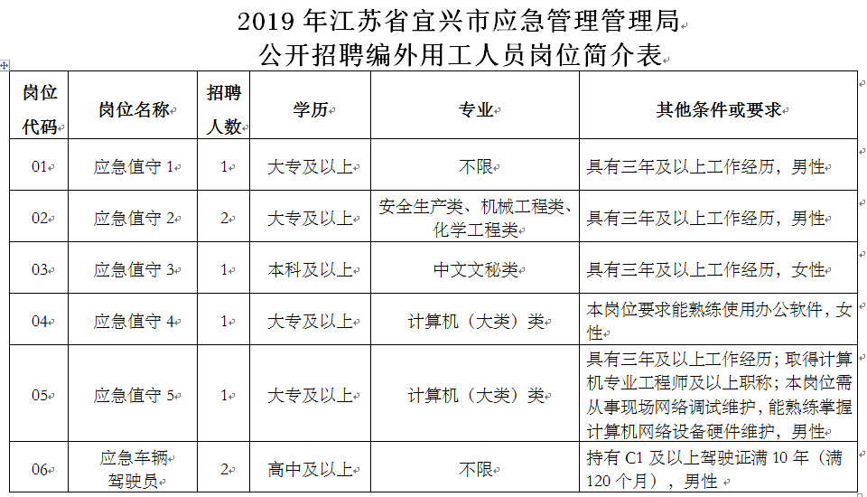 《2019年江苏省宜兴市应急管理局公开招聘编外用工人员岗位简介表》.doc
