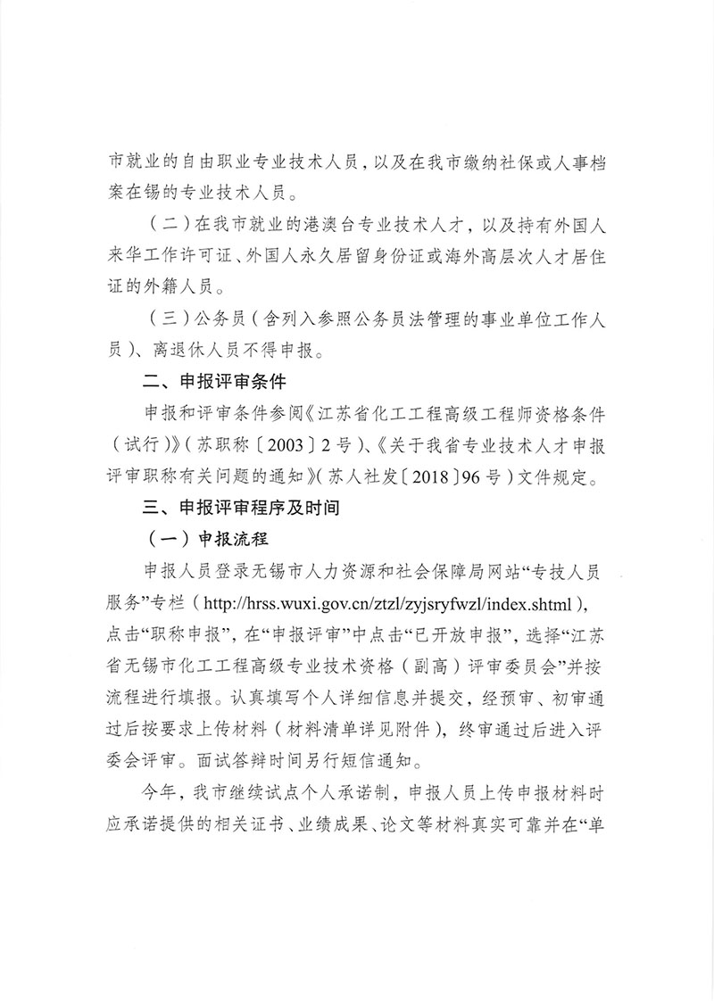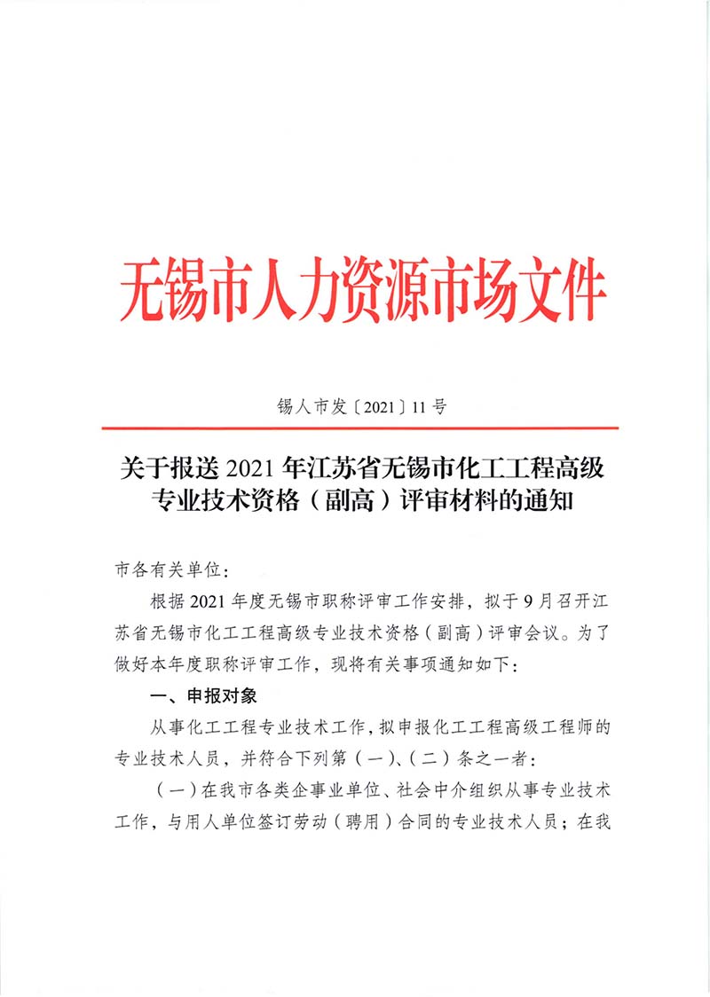 下载附件:关于报送2021年江苏省无锡市化工工程专业技术资格(副高)评审材料的通知.pdf