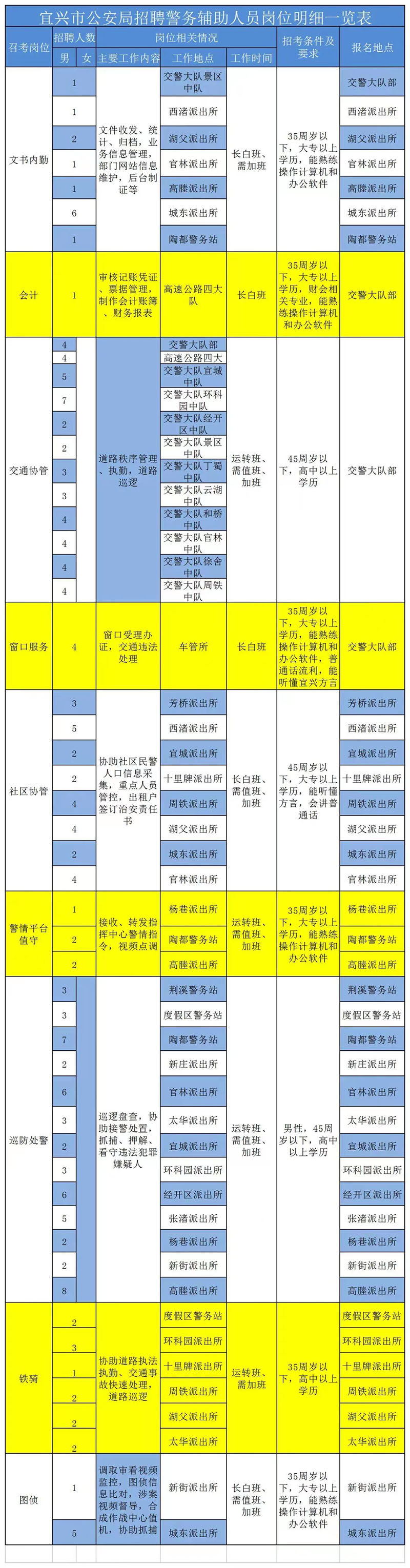 因公安工作需要,宜兴市公安局现面向社会公开招聘警务辅助人员165名。现将有关事项公告如下: